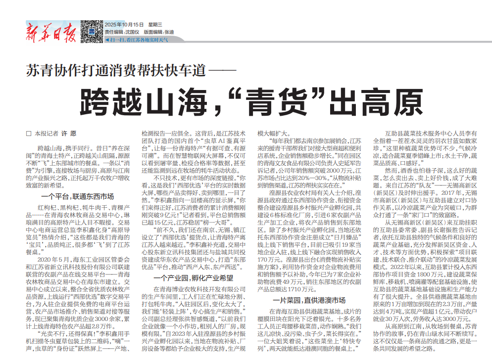 蘇青協作打通消費幫扶快車道 —— 跨越山海,“青貨”出高原10-15