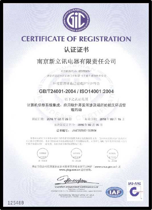 南京新立訊電器有限責任公司始終堅持標準化管理,對質量、環境、安全等環節中的管理流程進行不斷完善,并通過有效運營,提高了全體員工的質量與健康安全意識,也為進一步的市場開拓提供了強有力的支撐,提升了新立訊企業的形象及競爭力。