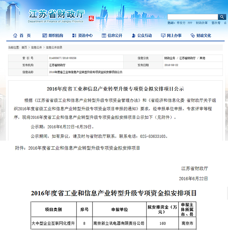 九月入秋,新立訊再次蟾宮折桂。近日,在省市區各級領導的關心和支持下,新立訊股份獲得了江蘇省2016年度省級工業和信息產業轉型升級及專項資金160萬科技補貼。