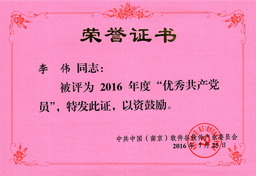 就在6月5日剛獲得“雨花有為青年”提名獎的我司李偉同志近日再次受到南京市雨花臺區(qū)表彰,被中共中國(南京)軟件谷軟件文化產(chǎn)業(yè)委員會評為2016年“優(yōu)秀共產(chǎn)黨員”。