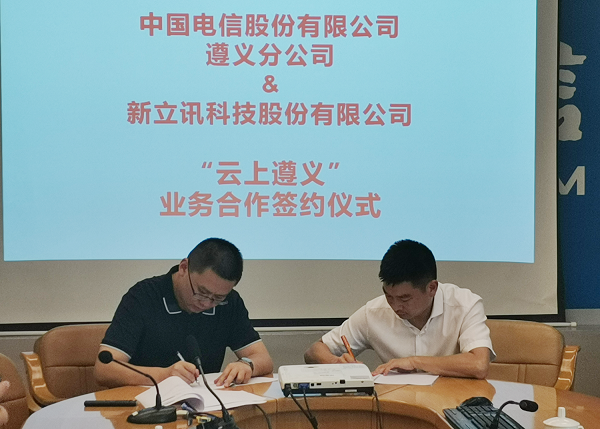 2020年6月24日,新立訊科技股份有限公司與中國電信股份有限公司遵義分公司簽署“云上遵義”業(yè)務合作協(xié)議。中國電信遵義分公司黨組成員、副總經理任飛,大數(shù)據(jù)運營部總經理劉犁,政企客戶部副總經理朱俊,新立訊副總經理余治、張?zhí)鱿灱s儀式。