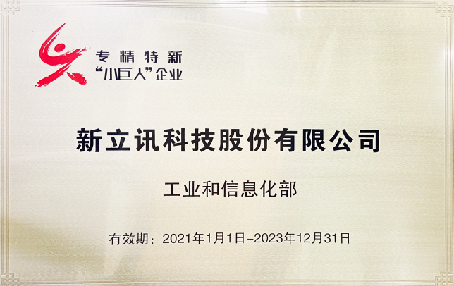 近日,新立訊獲工業和信息化部專精特新“小巨人”企業授牌(全國第二批)。