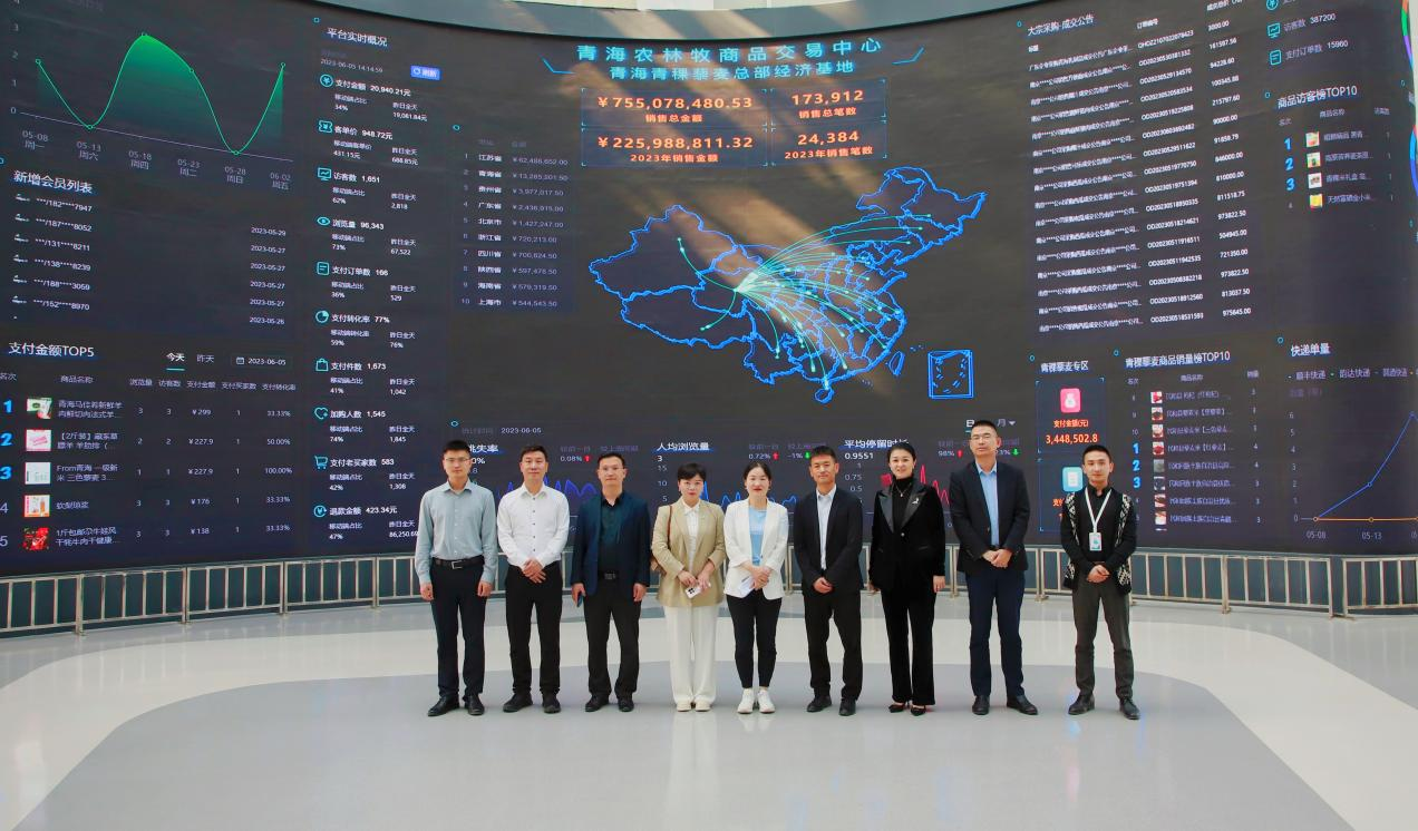 隨后,葉燕飛一行實(shí)地參觀“青稞藜麥總部經(jīng)濟(jì)基地”長(zhǎng)廊、鑒真溯源中心、超算中心、物聯(lián)網(wǎng)檢測(cè)中心、特色商品展區(qū)等,詳細(xì)了解交易中心核心技術(shù)、市場(chǎng)布局、電商運(yùn)營(yíng)情況,實(shí)地感受交易中心在青海農(nóng)產(chǎn)品資源整合、流通渠道搭建、電商交易、電子結(jié)算等運(yùn)營(yíng)模式,引領(lǐng)青海數(shù)字農(nóng)產(chǎn)業(yè)、數(shù)據(jù)銷售鏈發(fā)展。